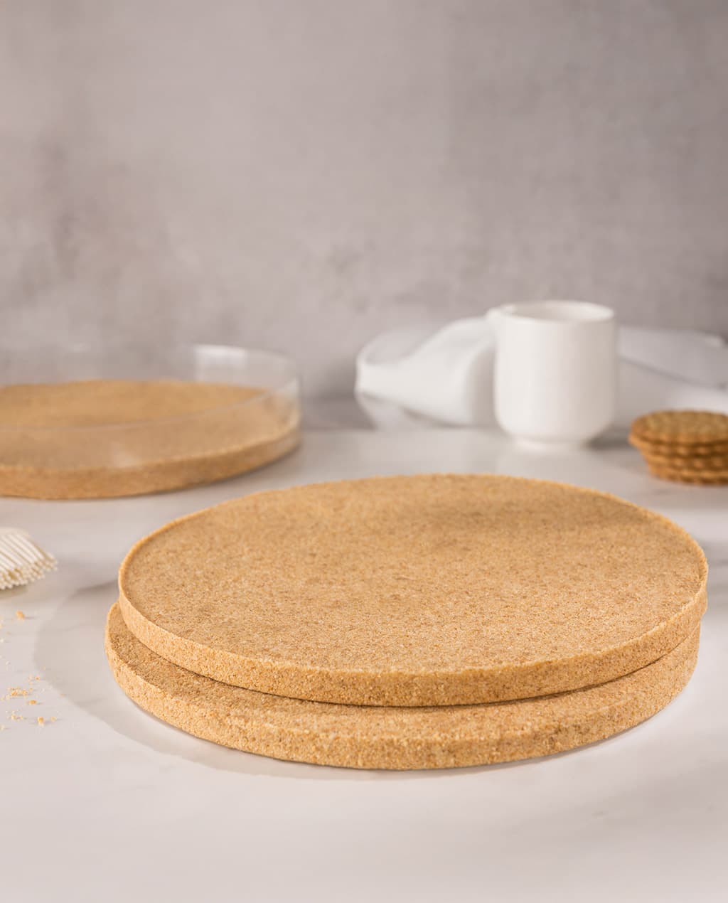 Base de galletas para tartas sin horno con su propio molde de plástico fácilmente extraíble. Rellenar, enfriar y… ¡Listo! Tus postres fríos y mousses en minutos.