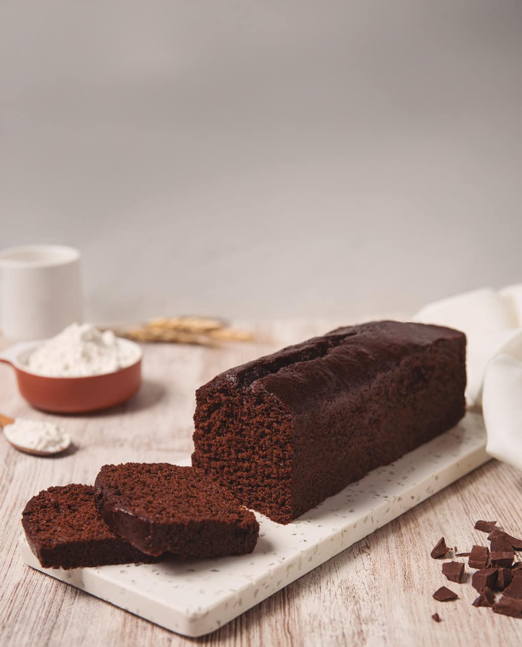 Bizcocho de chocolate en formato Plum cake, tierno y esponjoso. Otro clásico imprescindible en el sector para servir solo o cubierto con toppings rápidos.