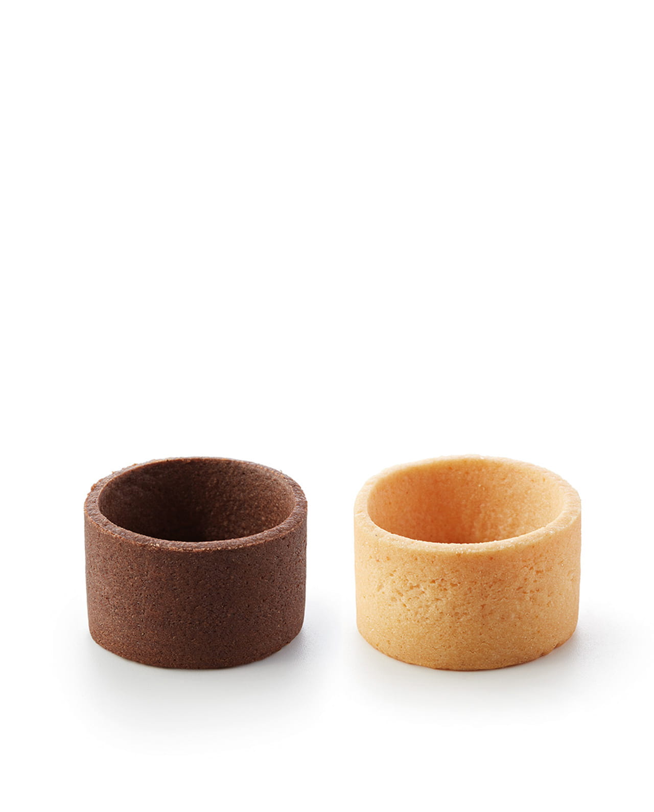 Surtido de mini tartaletas de pasta brisa dulces, naturales y cacao, de 38 mm. Deliciosas bases de calidad Gourmet elaboradas con mantequilla listas para rellenar.